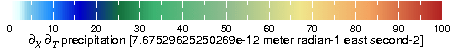 - 7.67529625250269×10-12 meter radian-1 east second-2